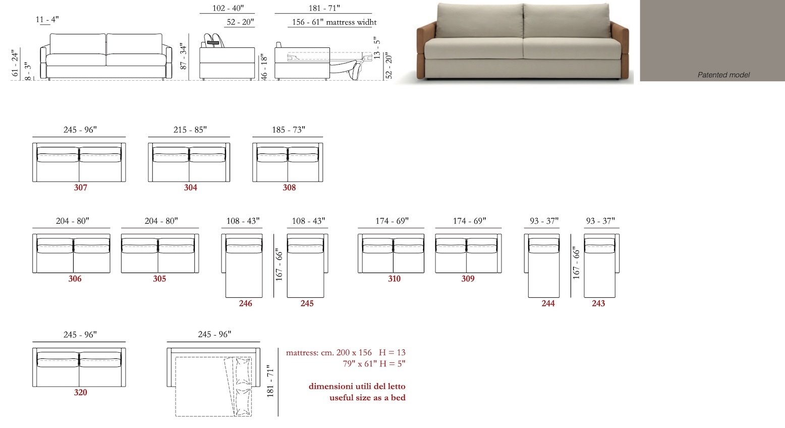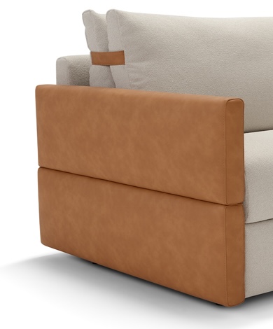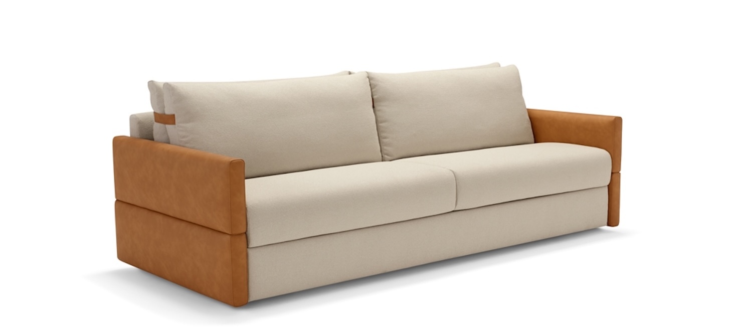 Для данной модели доступно более 40 вариантов итальянской обивочной ткани в различных цветовых вариантах, а также натуральная кожа. Впечатляющая по размеру (250 см в ширину), но легко вписываемая в любой контекст благодаря эстетике, которая в то же время является сдержанной, но не банальной, трехместная модель maxi Eudora интерпретирует диван-кровать с универсальностью и характером, хорошо помня о функциональности. Дизайн характеризуется летающей спинкой, состоящей из пар широких подушек с набивкой из гусиного пуха и связанных между собой стяжкой, напоминающей обивку подлокотников. Последние, предложенные в коже с изысканным эффектом облачности, но также доступные в той же ткани, что и мягкие детали, с боков обозначены глубоким центральным швом, который увеличивает глубину. Переход с дивана на кровать происходит с помощью нескольких жестов: достаточно будет снять подушки с плеч и активировать, благодаря встроенному ремню, механизм откидывания, открывающий матрас. Eudora была спроектирована с горизонтальным открытием и кроватью, ориентированной поперечно по отношению к сиденью, чтобы не занимать много пространства при открытии.