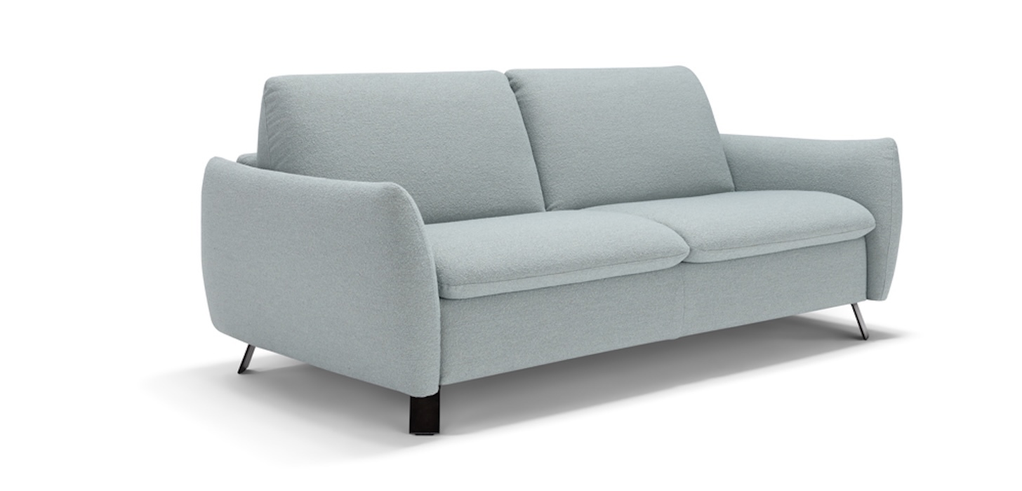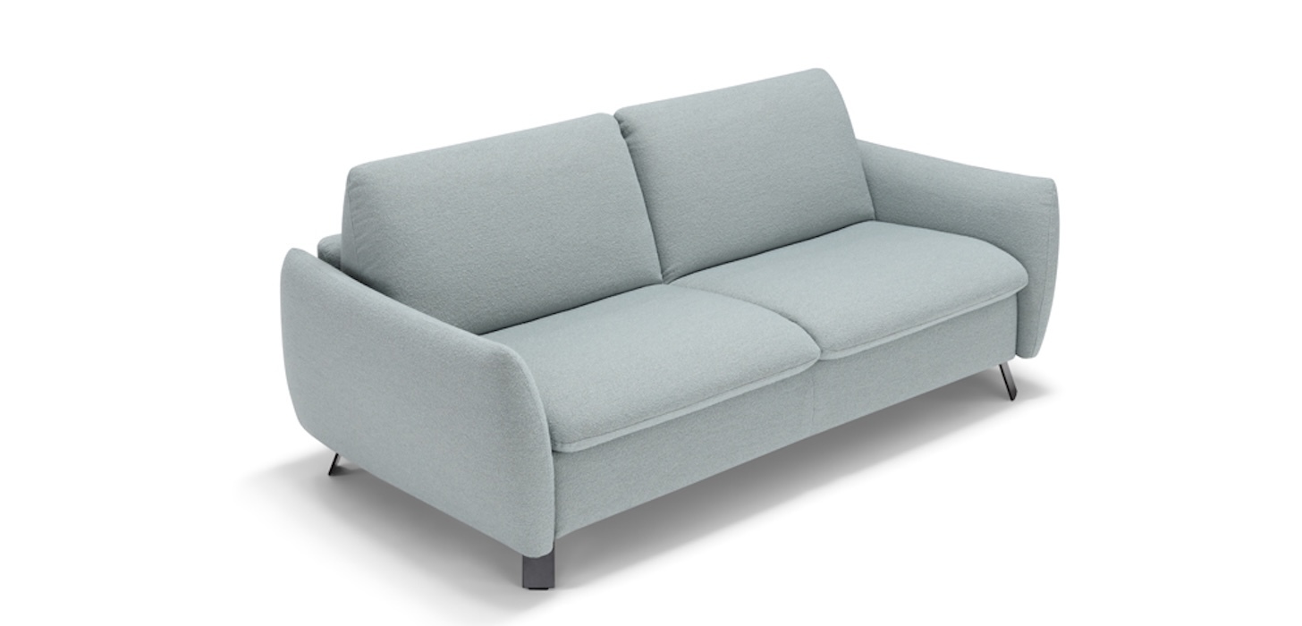 Для данной модели доступно более 40 вариантов итальянской обивочной ткани в различных цветовых вариантах, а также натуральная кожа. Диван-кровать Мерил (Meryl) характеризуется чистой и простой линией, подчеркнутой металлическими ножками, которые обтекают всю структуру, и обивкой из высококачественной итальянской ткани. Также в этой модели трансформация дивана в кровать происходит одним быстрым и интуитивно понятным движением, просто потянув за ремень, расположенный за спиной.