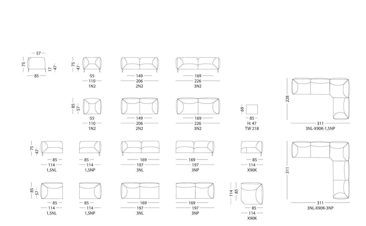 Модульный комплект для гостиной, созданный из индивидуального расположения элементов. Спинки и подлокотники здесь имеют одинаковую форму, ритмично повторяющуюся, но Gern — не простой. Цельная форма состоит из двух конструкций: каркасной прочной внешней оболочки и ее мягкой набивки. Интерьер дивана представляет собой пышные формы подушек; это как облако, на котором можно сидеть - трудно подобрать более точную метафору для комфорта.