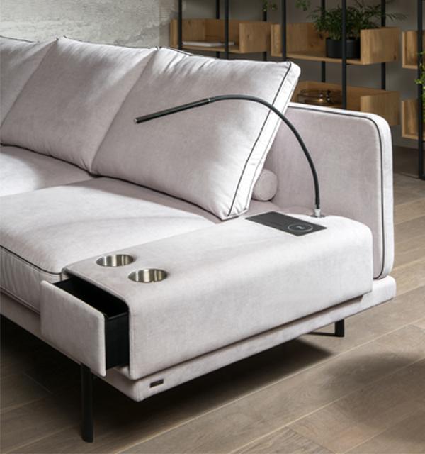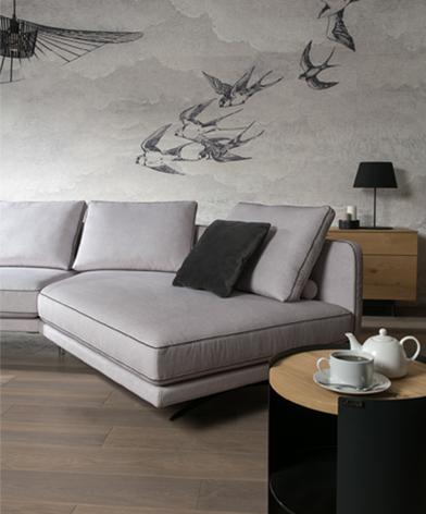 Для данной модели доступно более 40 вариантов итальянской обивочной ткани в различных цветовых вариантах, а также натуральная кожа. Отдых, расслабление, беззаботность и комфорт. В этой модели это достигается на удивление просто. На прочной жесткой платформе ритмично уложены в ряд широкие подушки сидений. Сзади них перпендикулярная спинка поддерживает высокие, отклоненные назад подушки. Просто и убедительно. Подушки сидений и спинок отделаны декоративной каймой любого цвета на выбор, а также имеется широкий выбор аксессуаров и множество удобств – все это вместе становится настоящим центром отдыха.