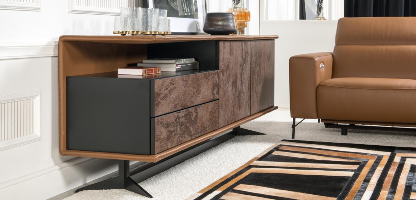 Presto – это необычный, по-настоящему современный комод с двумя дверцами, двумя ящиками и одной открытой полкой.