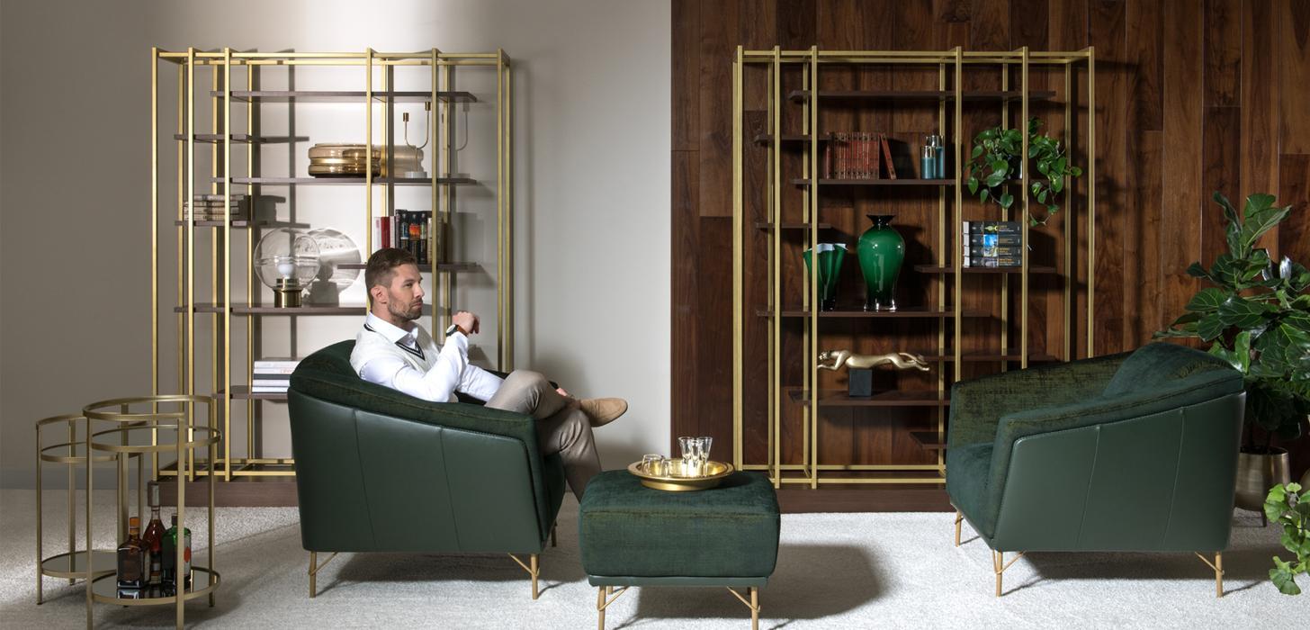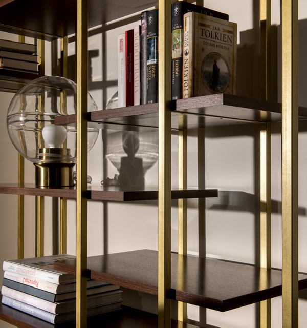Мебель создана для сувениров, безделушек, декоративных фигурок и посуды.Тонкие стальные прутья (2 x 2 см) могут быть золотого или черного цвета. А основание и полки — с отделкой из натурального шпона (среди прочего, американским орехом) либо эмалью (выбор более десяти цветов, каждый с вариантом лакированного или матового покрытия).