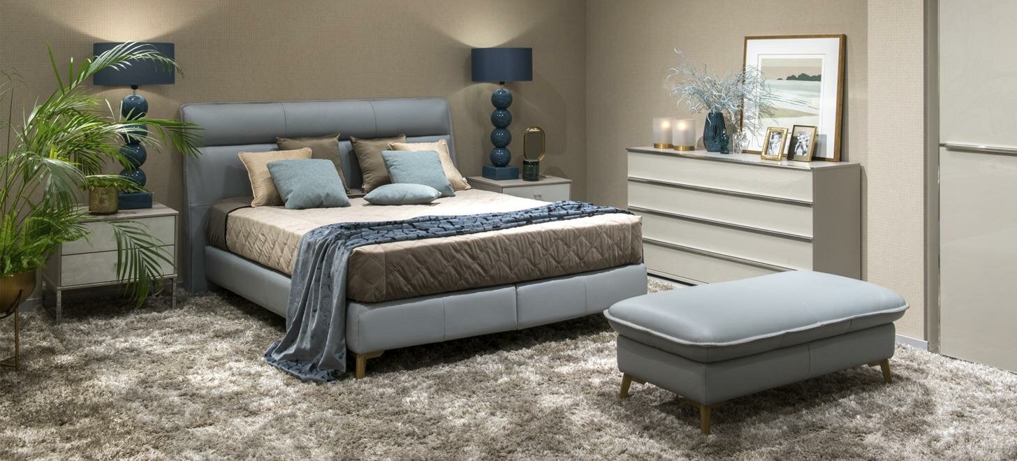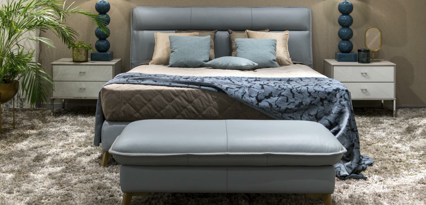 Мягкая континентальная кровать • Размеры матраса 160/180 x 200 см. • Мягкое ортопедическое основание кровати с системой (пружинный блок Бонель) • Изголовье украшенное декоративными швами • Металлические ножки - графитовый хром.