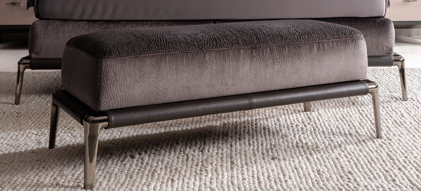Кровать Силенцио (Silenzio) доступна в трех размерах. Передняя часть изголовья и боковые стороны основания отделаны тканью, а боковые стороны изголовья и нижняя часть конструкции обиты натуральной кожей. Такое сочетание придает кровати неоспоримый характер. Задняя часть изголовья может быть отделана эстетически приятной технической тканью или кожей. Мягкий матрас оснащен пружинной системой (пружинный лист Бонель), которая обеспечивает более комфортный отдых. Его верхняя часть изготовлена из противоскользящей ткани, что затрудняет перемещение матраса. Кровать стоит на изящных металлических ножках цвета графит-хром. Не менее функциональным дополнением являются дополнительные светодиодные лампы, расположенные по обе стороны изголовья кровати. Каждая лампа имеет USB-порт. По индивидуальному заказу можно изменить обивку кровати и изголовья (выбрать только ткань или сочетание кожи и ткани), цвет обивки и ножки. Пуф также можно заказать отдельно.