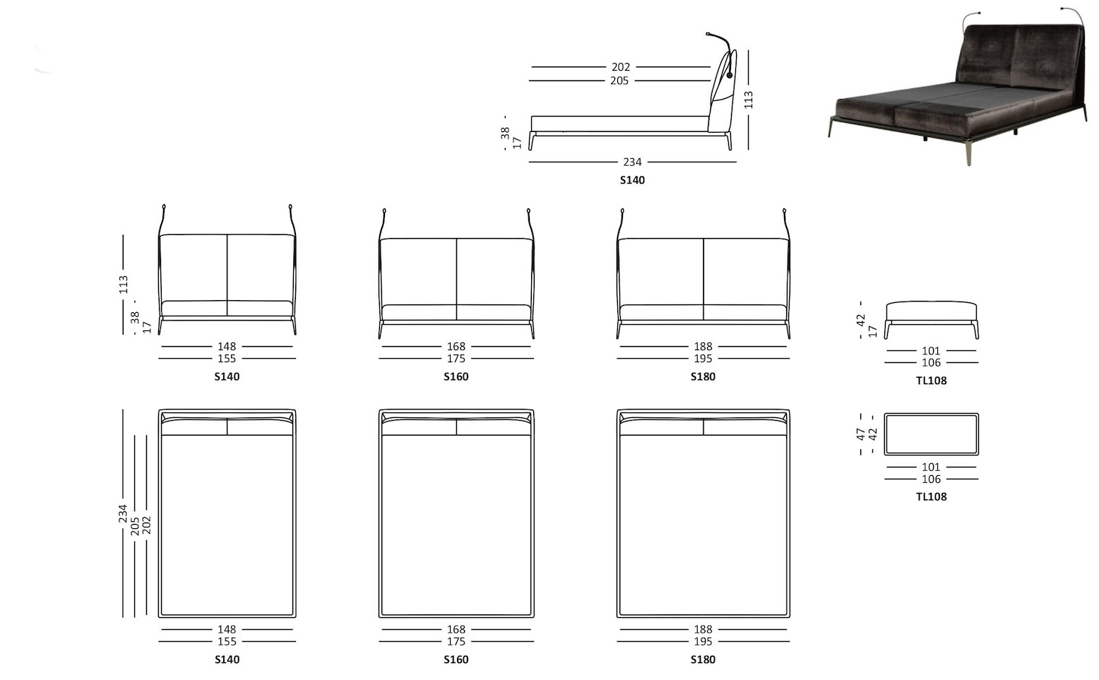 Для данной модели доступно более 40 вариантов итальянской обивочной ткани в различных цветовых вариантах, а также натуральная кожа.
